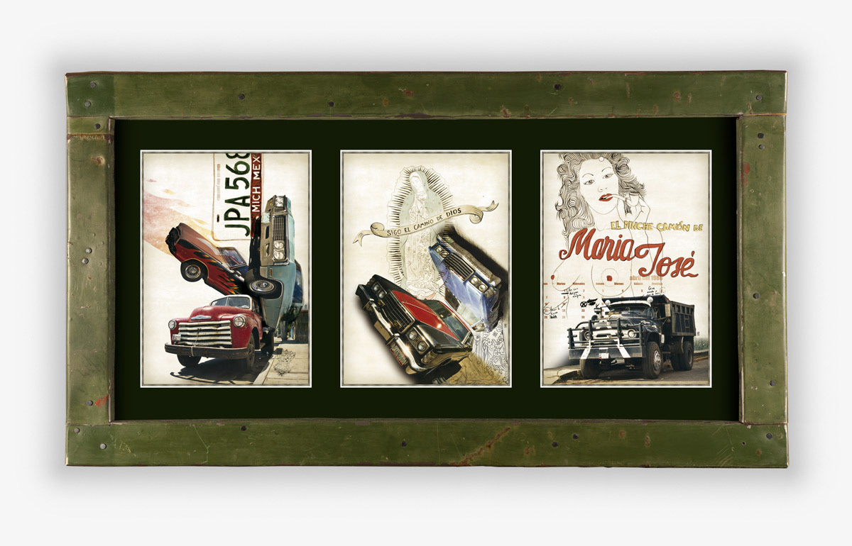 Compositions graphiques faites à partir de photos de vieux véhicules mexicains