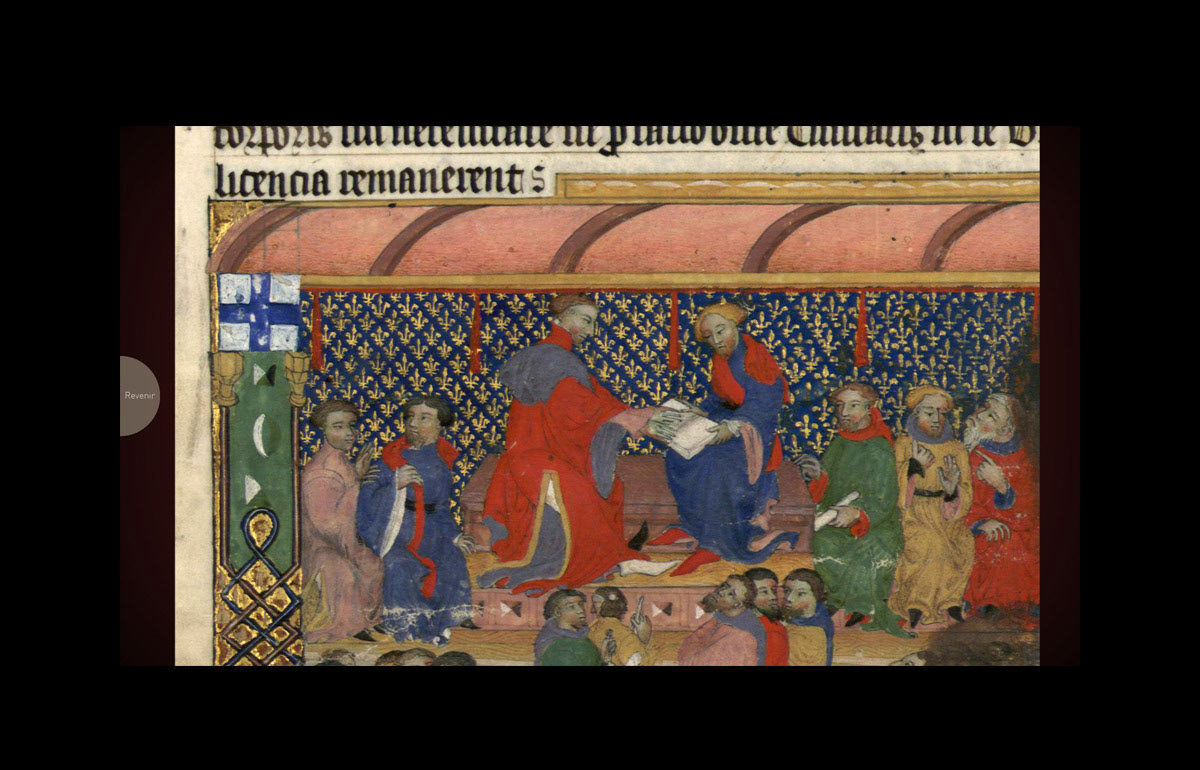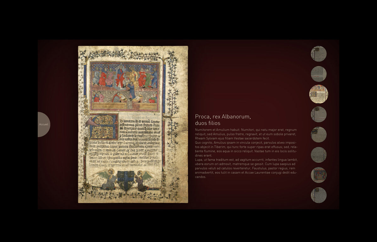 Réalisation de l'interface utilisateur de cette borne permettant de feuilleter ce parchemin enluminé par Jean Dubois en 1253
