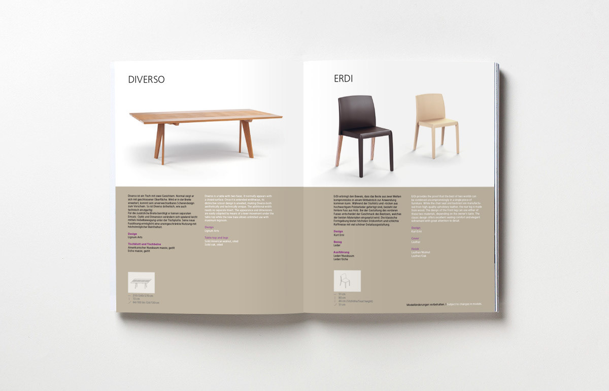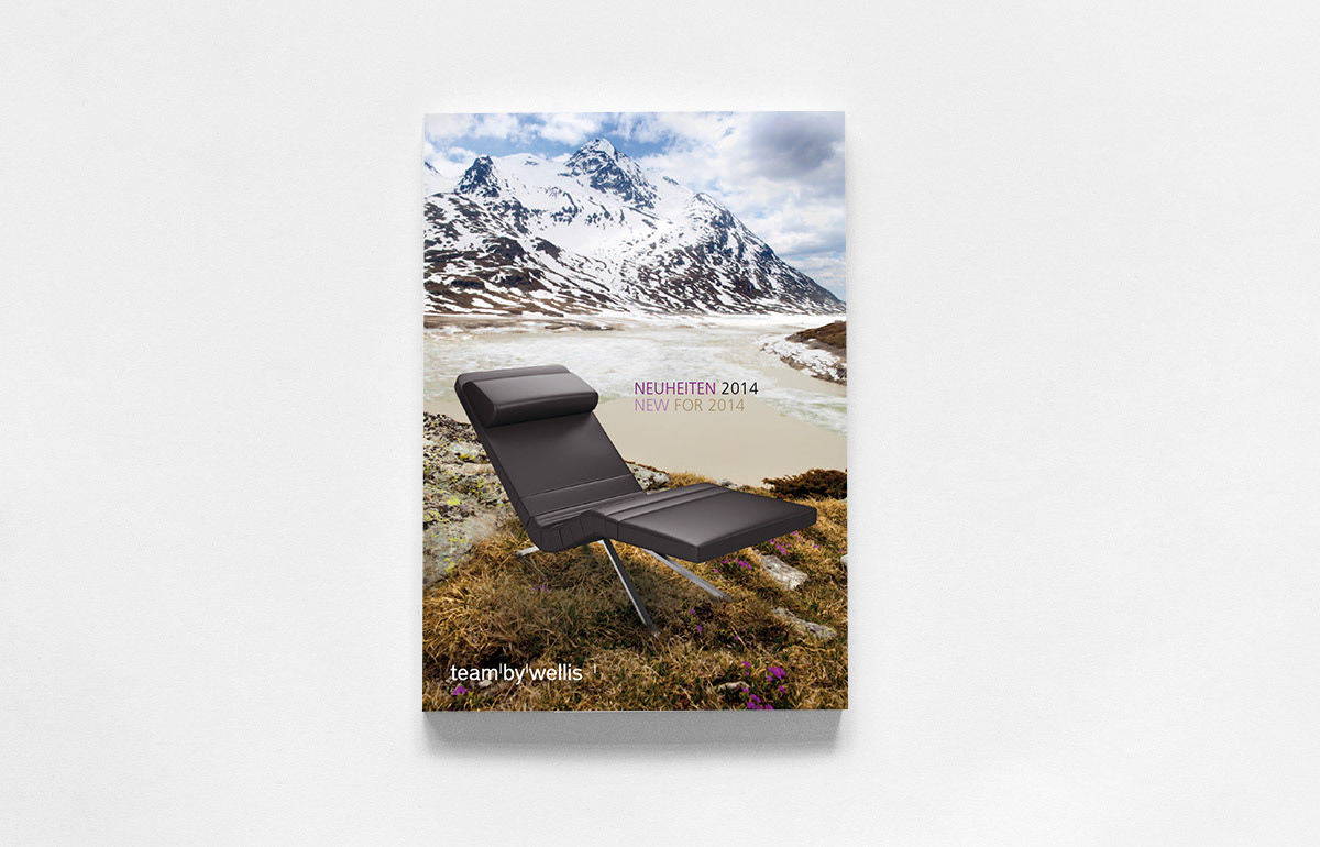 Couverture et mise en page du catalogue 2014 de ce créateur de mobilier suisse